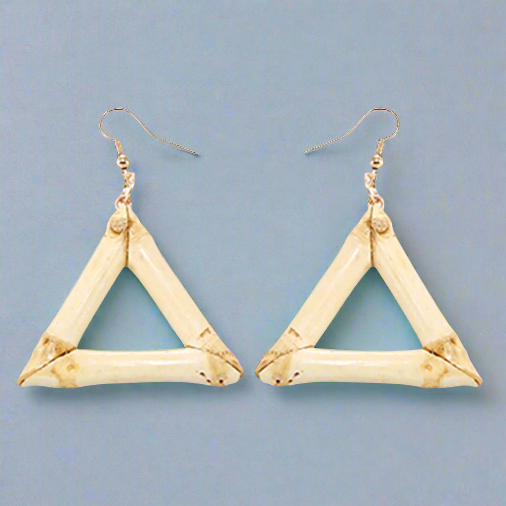Made from authentic bamboo wood, these triangle earrings are a must for any rockabilly, tiki pin up! Fabulously oversized for a statement look.