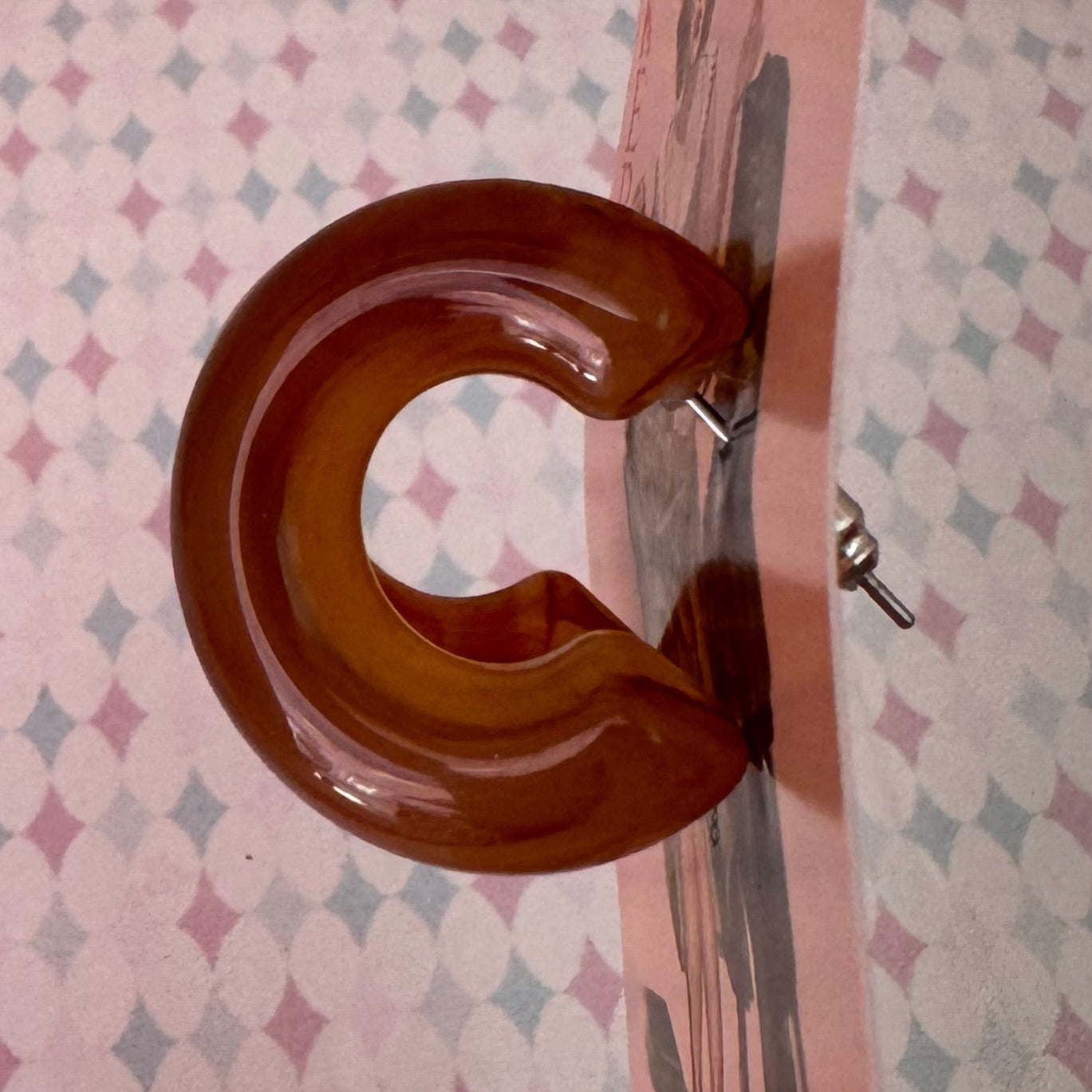 An essential for any vintage-ista! These acrylic loop earrings add an authentic finish to any pin up or retro outfit. Beautiful autumn tone brown colour with marble effect.