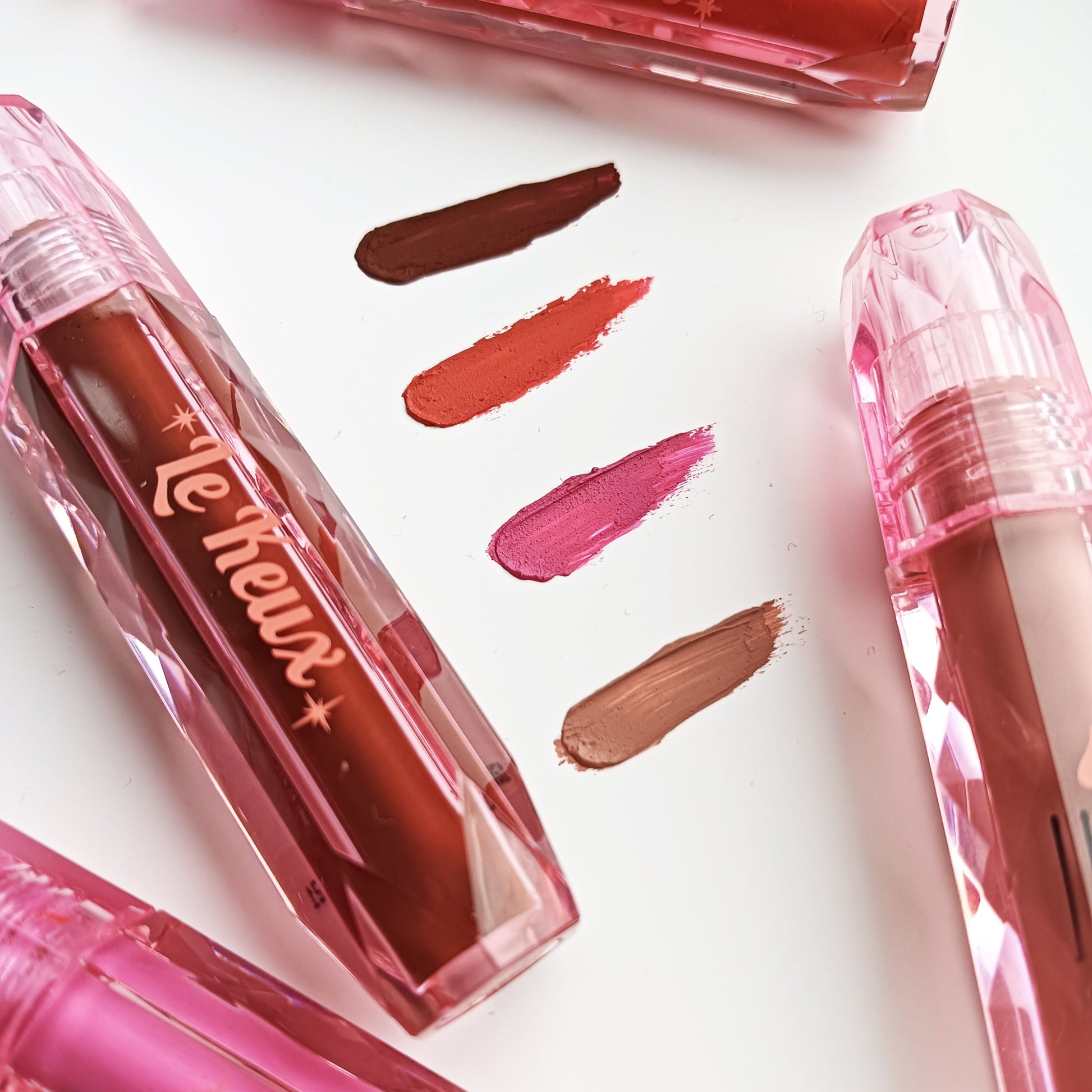 Our Forever On Your Lips range has been formulated in Italy and made in the UK, and it's cruelty free (we never test on animals). Packaged in beautiful cut acrylic pink tubes reminiscent of vintage glass dressing table sets and designed to sit perfectly alongside your existing Le Keux range, along with our special edition mid century, atomic print boxes.