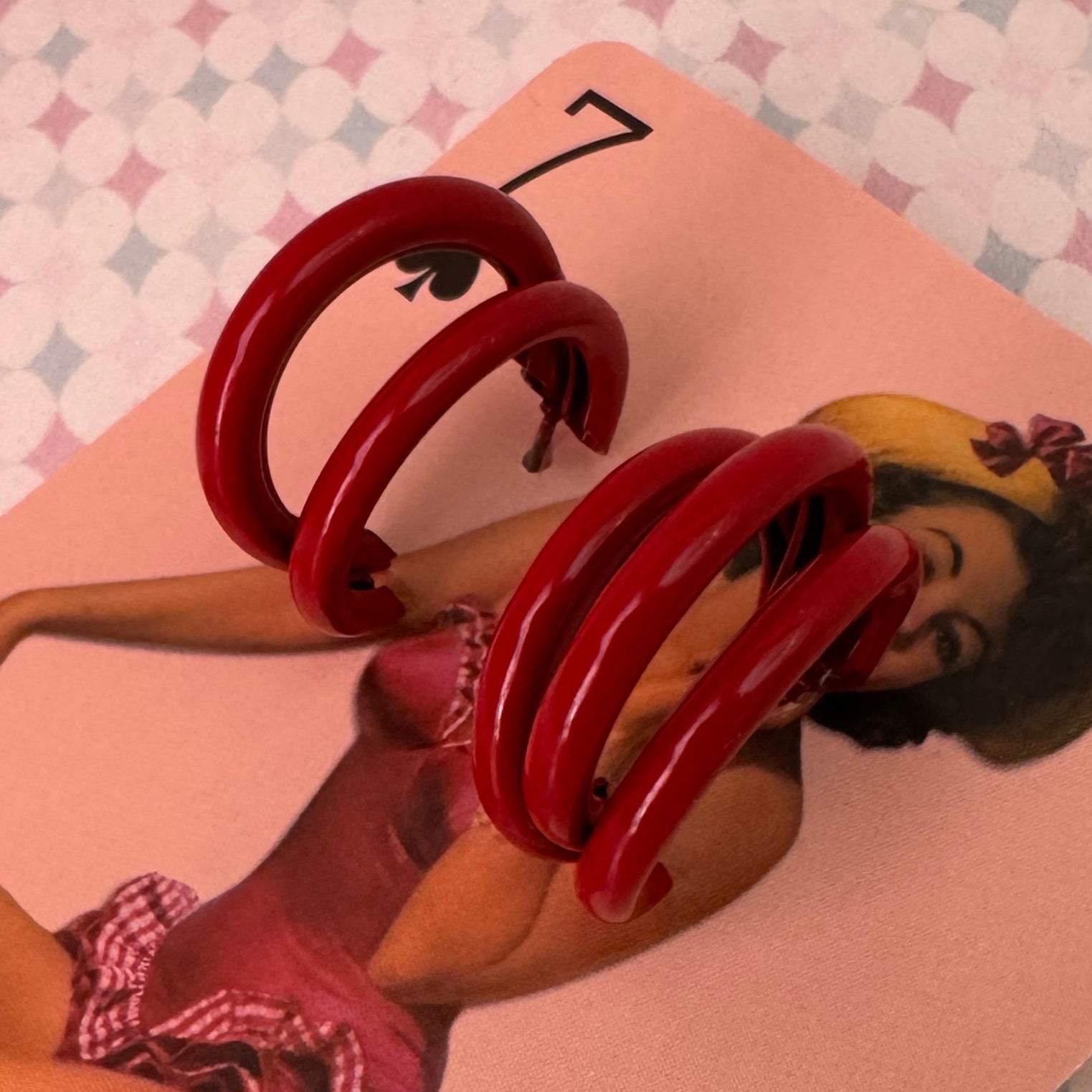 Beautiful three loop metal earrings. The ultimate '50s and rockabilly inspired accessory.