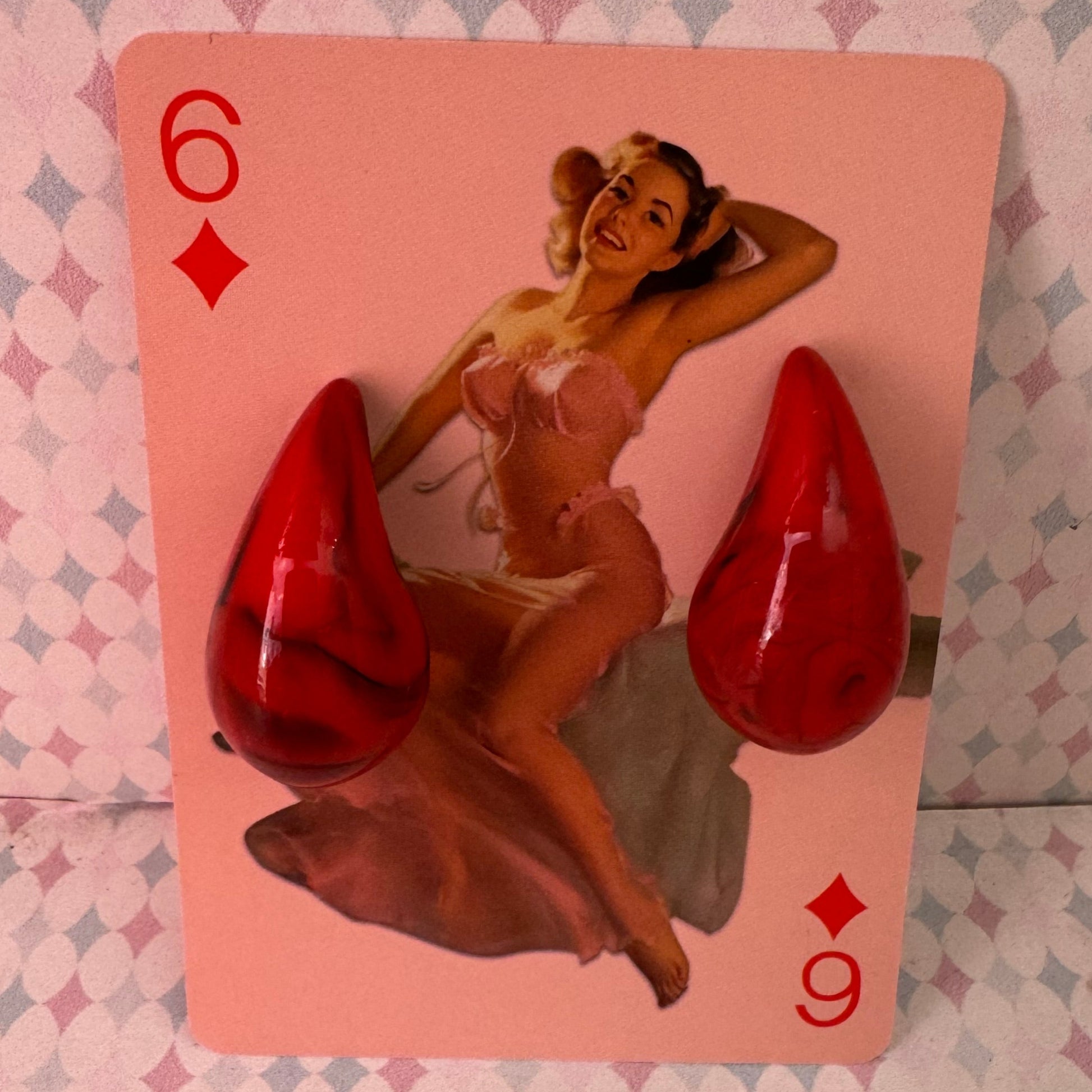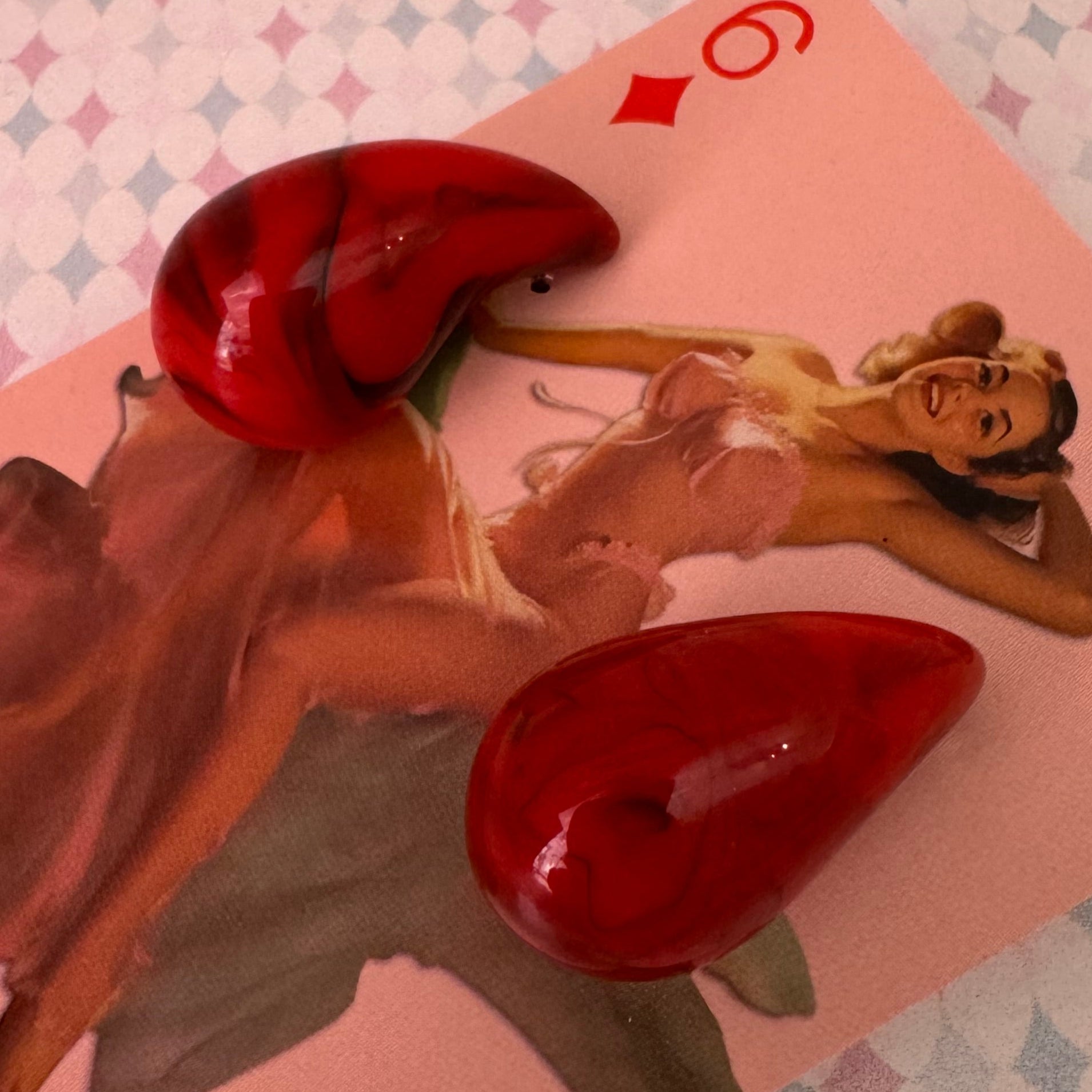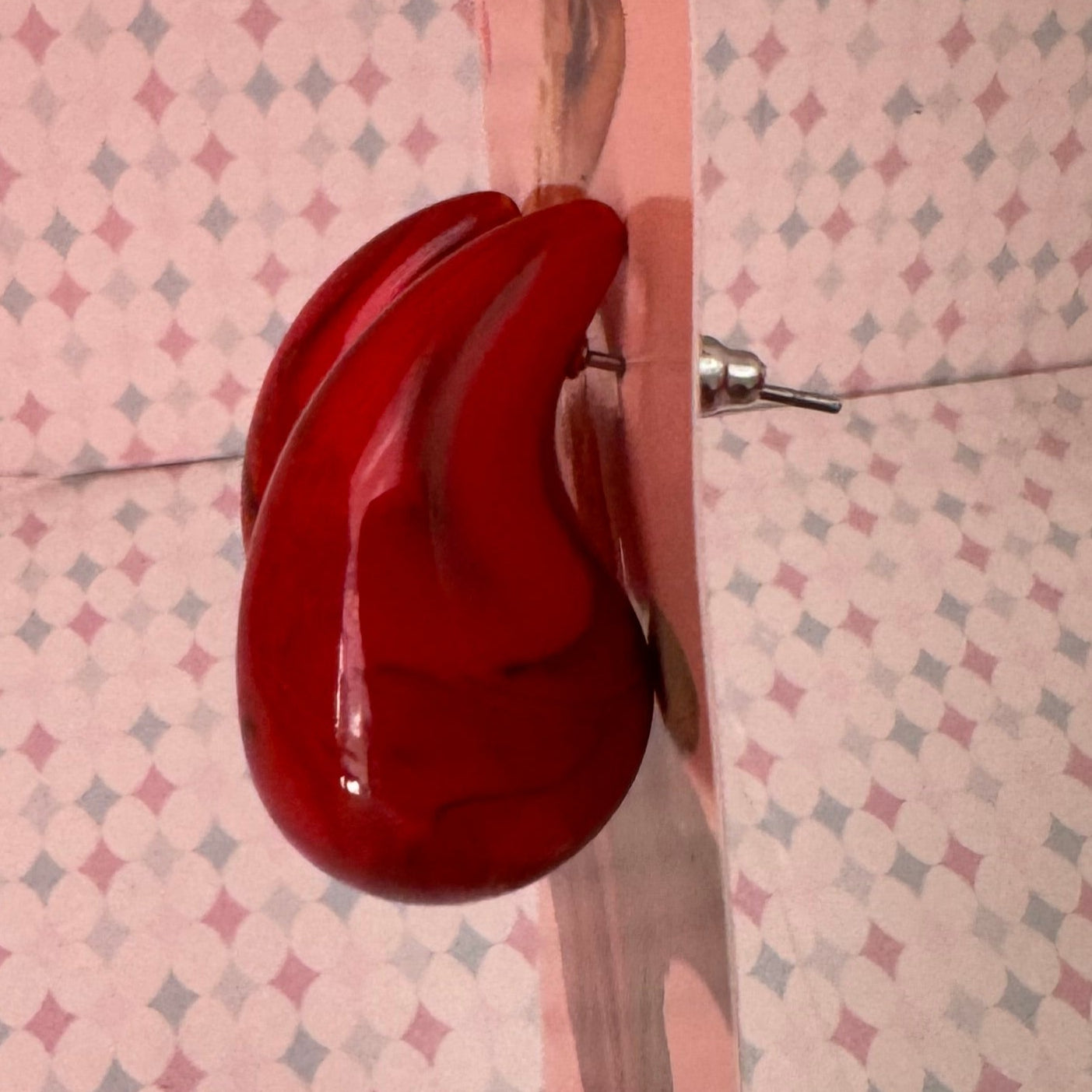 Teardrop acrylic earrings in the style of vintage Bakelite. With stunning marbled effect.